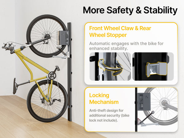 • SPACE-SAVING VERTICAL STORAGE: This garage bike lift saves 40% of floor space by storing bikes vertically, making it ideal for tight areas like garages, apartments, or small storage rooms.This innovative solution is ideal for efficiently decluttering tight spaces while keeping your bike secure and easily accessible