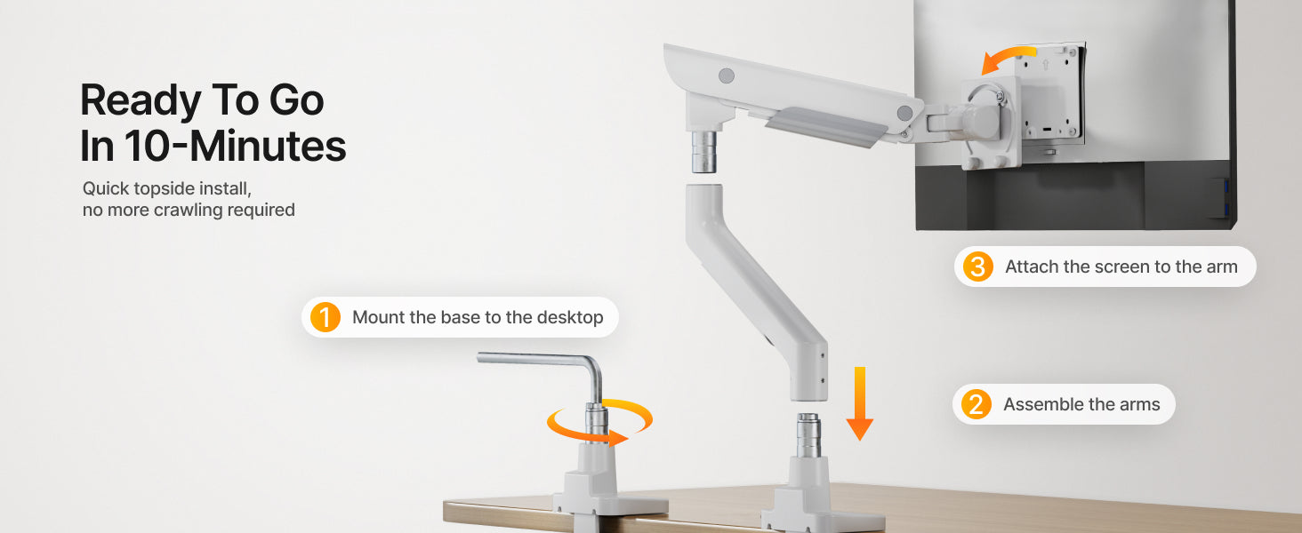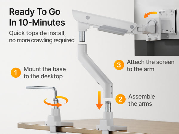 • 【Easy Installation】This mount supports two installation methods: C-clamp and grommet. The quick-release VESA plate makes installation effortless, while clearly labeled components help ensure a smooth assembly process. With this mount, you can save up to 30% of installation time